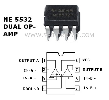 NE5532 adalah dual Low Noise Op-Amp 8-pin yang biasa digunakan sebagai penguat dalam rangkaian audio yang anti noise serta kapabilitas drive output yang tinggi. Op-Amp ini secara internal memiliki kompensasi untuk gain tinggi dengan bandwidth dengan ayunan output maksimal, distorsi yang rendah dan memiliki Slew rate yang tinggi.